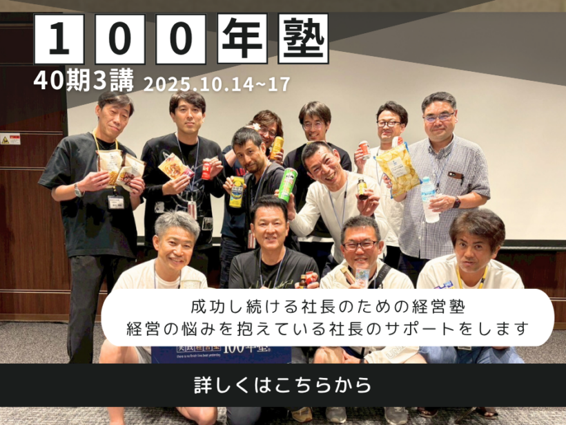 100年塾40期3講が開催されました! 今回のテーマは「短期計画の策定」。 “理想の未来”から逆算していくこの3講は、毎年最も集中力と覚悟が問われる時間でもあります。 来期の経営計画書を「数字で語れる計画」へと進化させる […]...