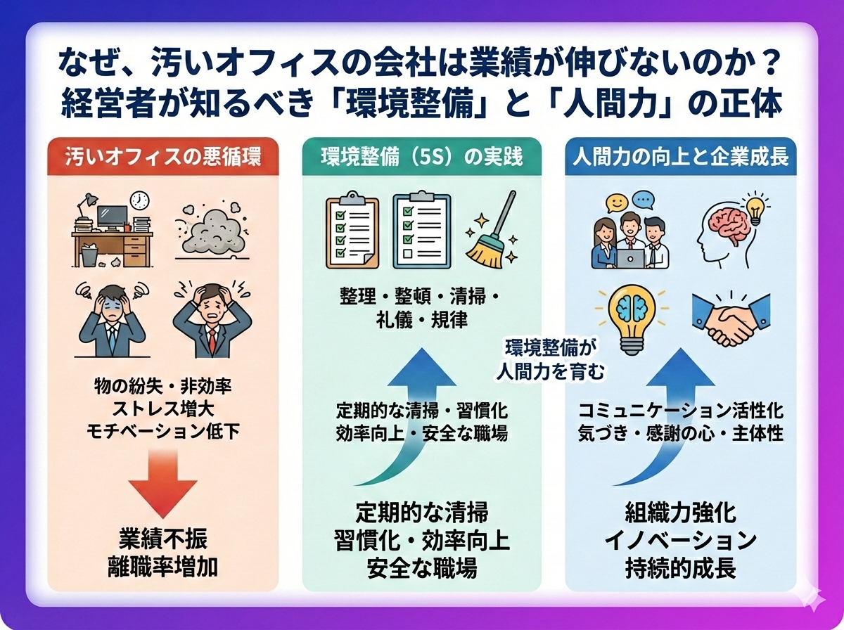 なぜ、汚いオフィスの会社は業績が伸びないのか?経営者が知るべき「環境整備」と「人間力」の正体
