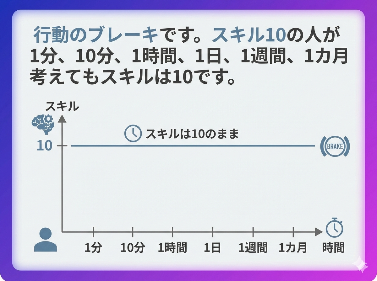 そこで1ヶ月悩み続けても、経験値は「10」のまま。